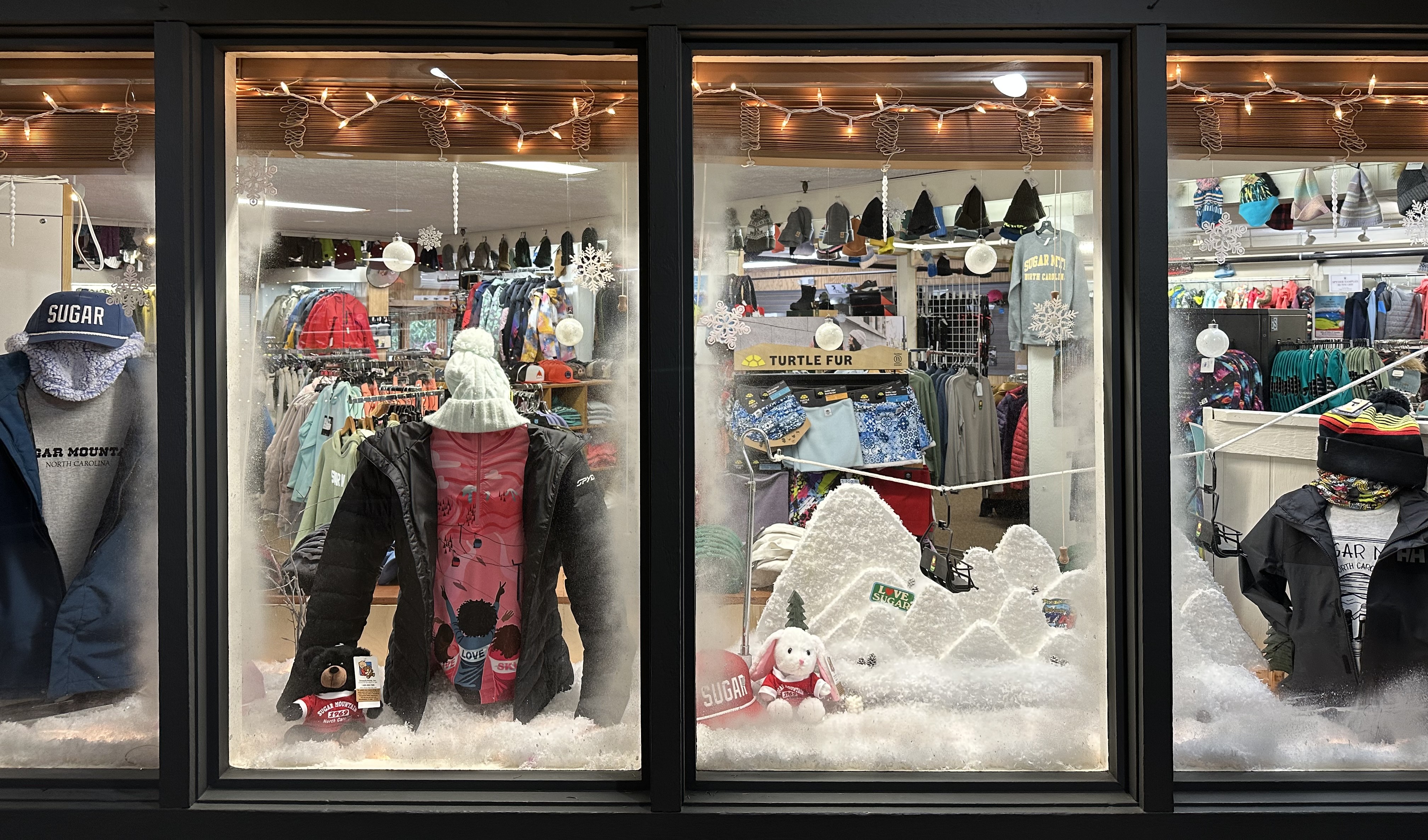 Sugar Mountain Sports Shop, located in the Base Lodge, features the finest in ski, snowboard and leisure apparel. The 2,320 square foot Shop also offers a large variety of accessories, souvenirs and gift items.